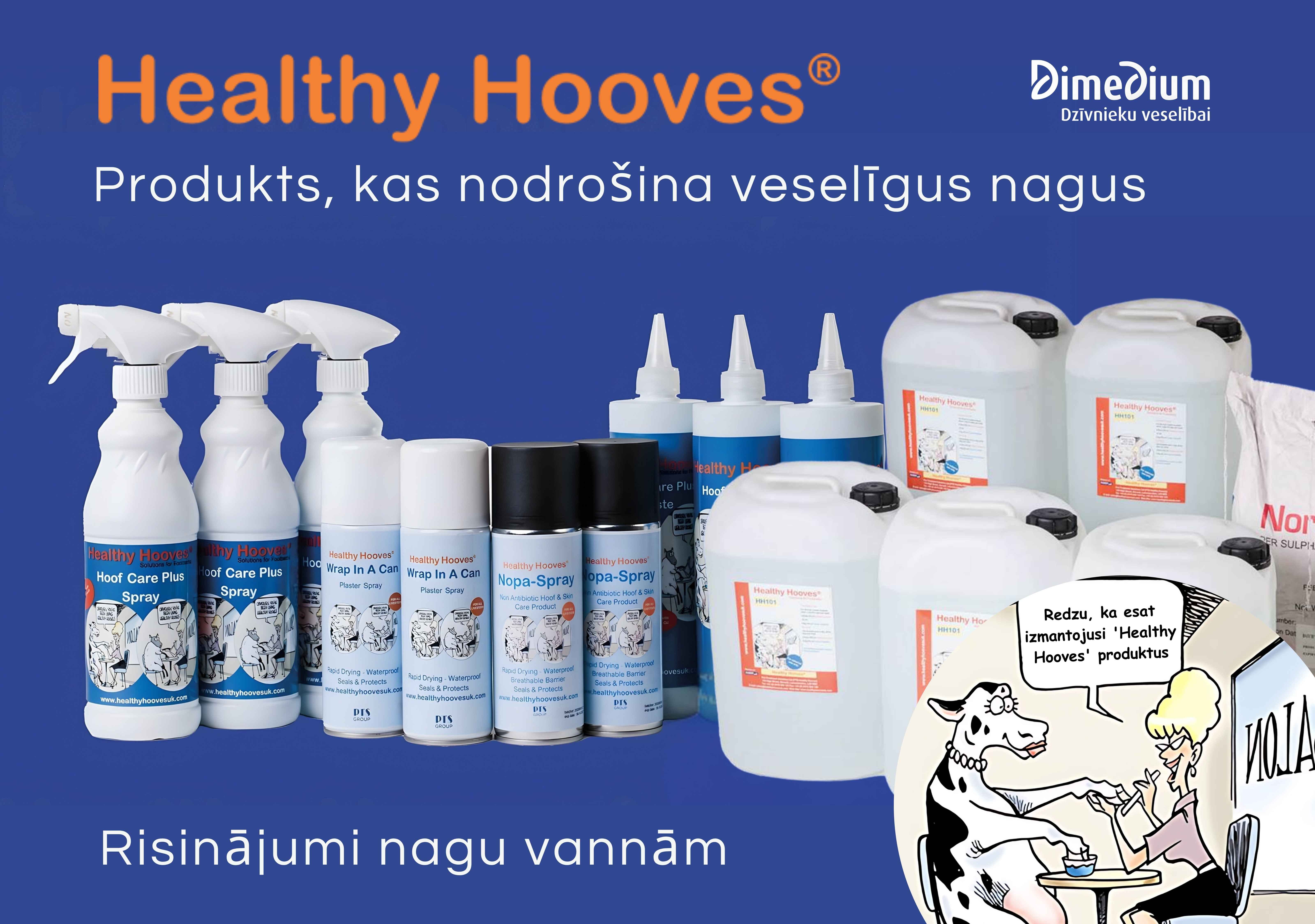 Līdzekļiem ir zems pH, tie labi šķīst. Healthy Hooves samazina vara sulfāta patēriņu par 80 %, līdz ar to nagu vannas ir efektī- vas 500 govīm. Healthy Hooves līdzekļi nenodara arī kaitējumu biogāzes ražošanas tehnoloģiskajam procesam.